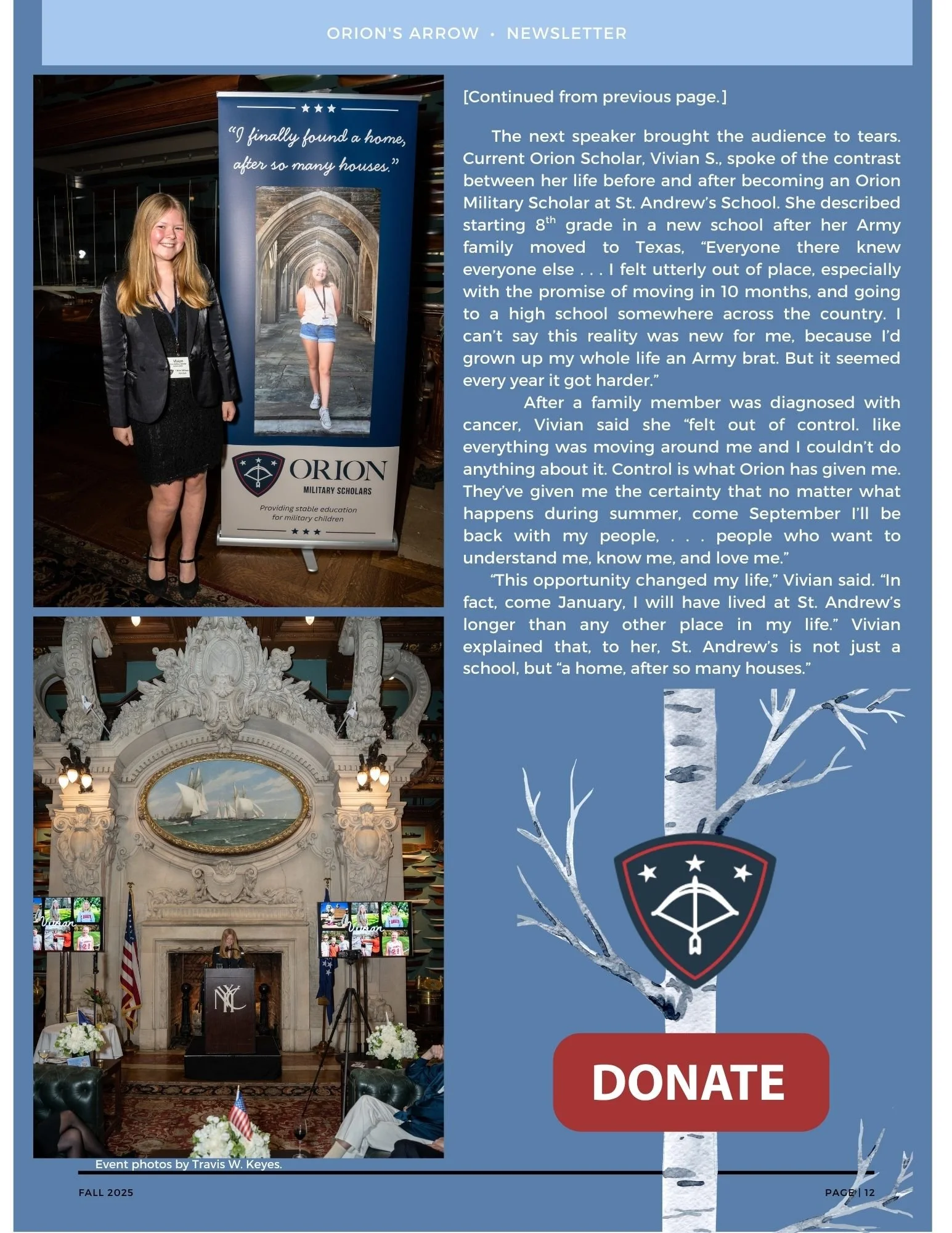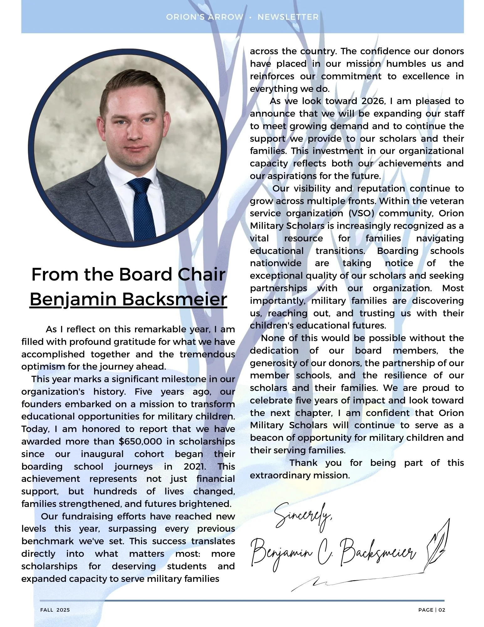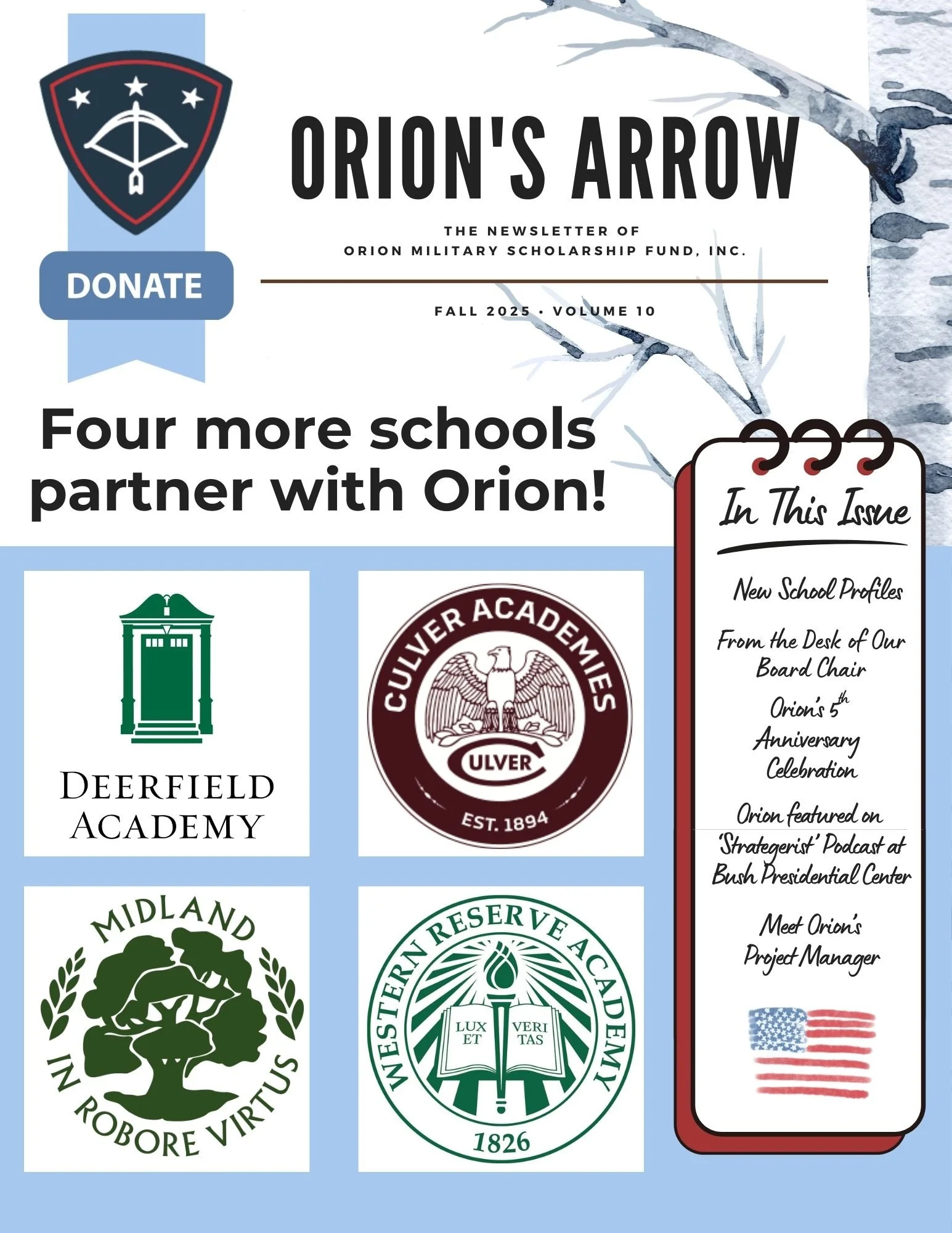 THE NEWSLETTER OF ORION MILITARY SCHOLARSHIP FUND, INC.