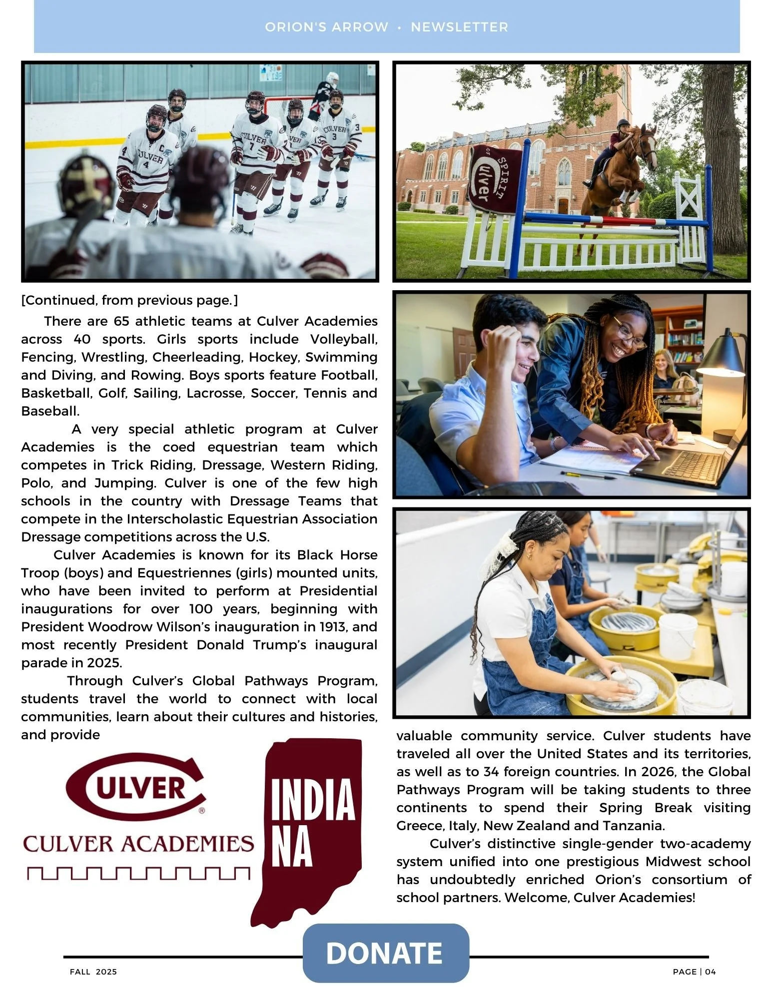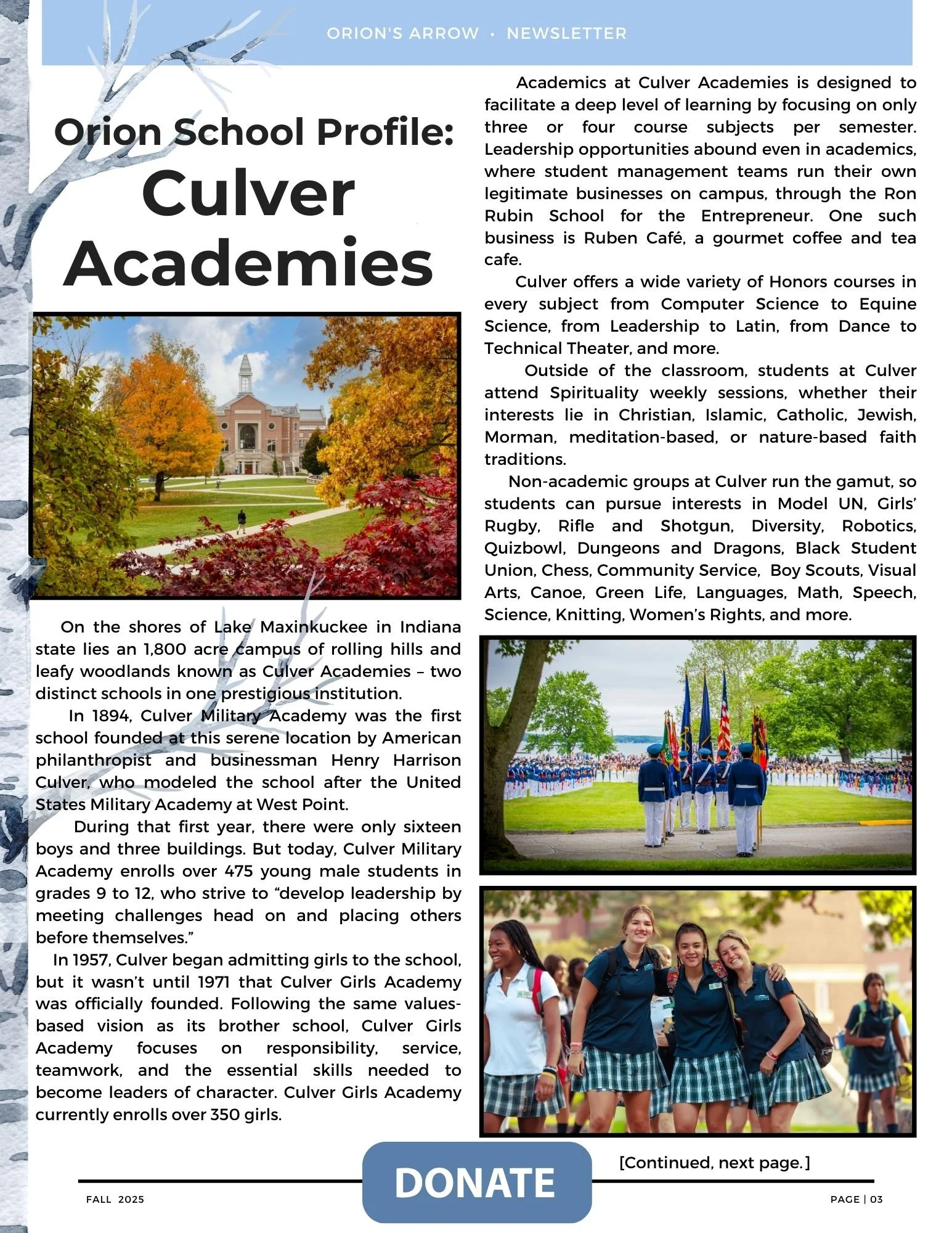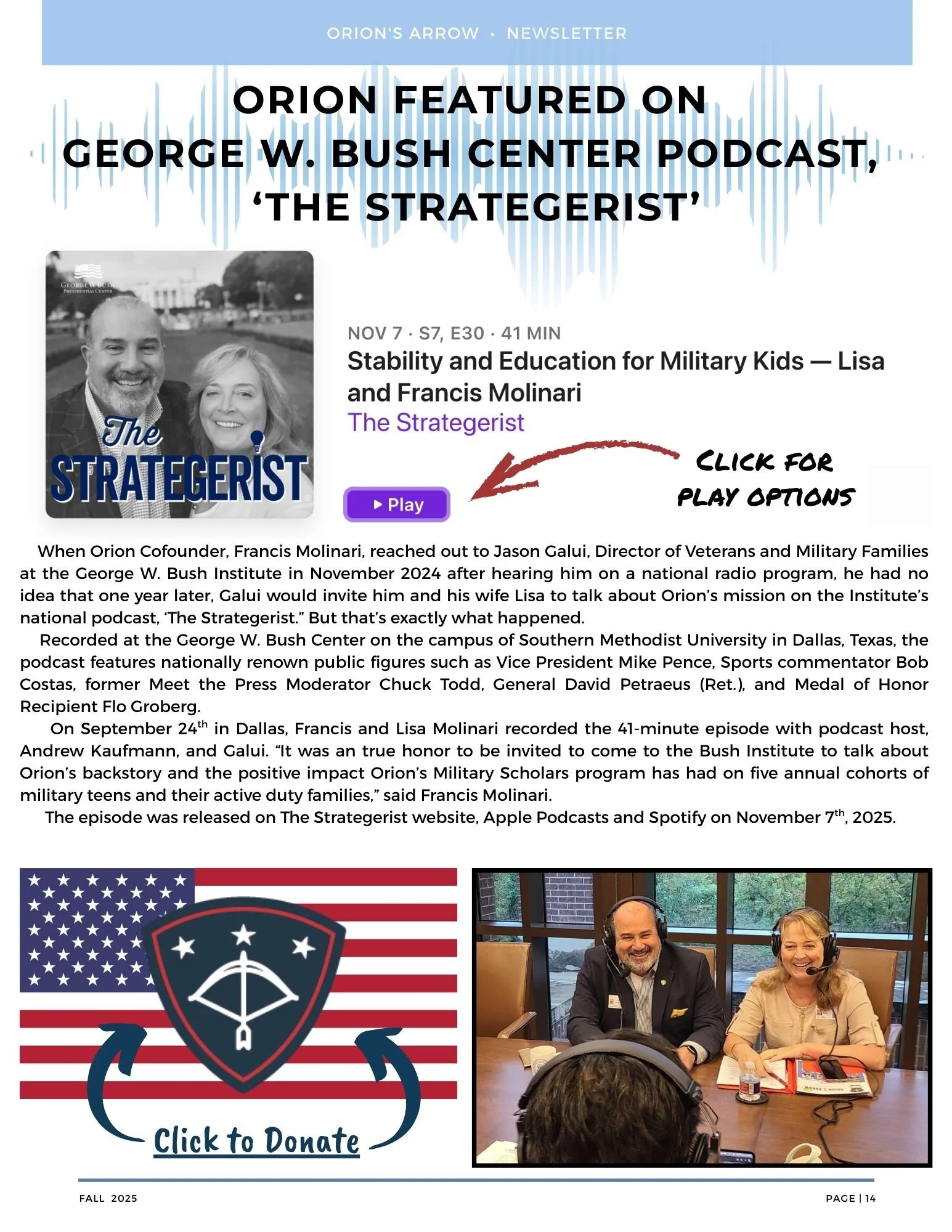 THE NEWSLETTER OF ORION MILITARY SCHOLARSHIP FUND, INC.
